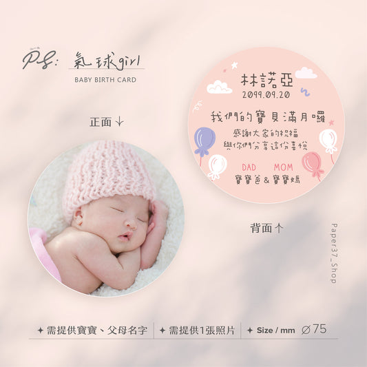 【氣球】圓形寶寶卡 方形寶寶卡